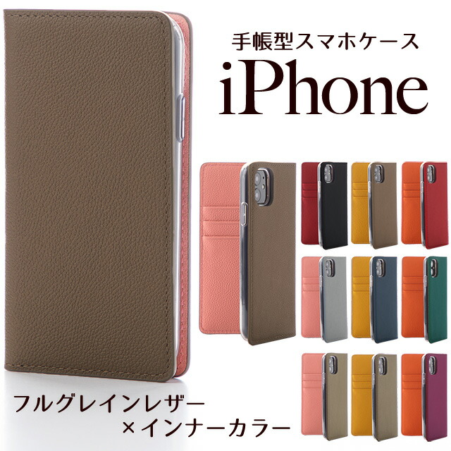 ケース スマホカバー 手帳型ケース マグネットなし ベルトなし インナーカラー 人気 シンプル レザー カードホルダー カード収納 おしゃれ お洒落 かっこいい ビジネス