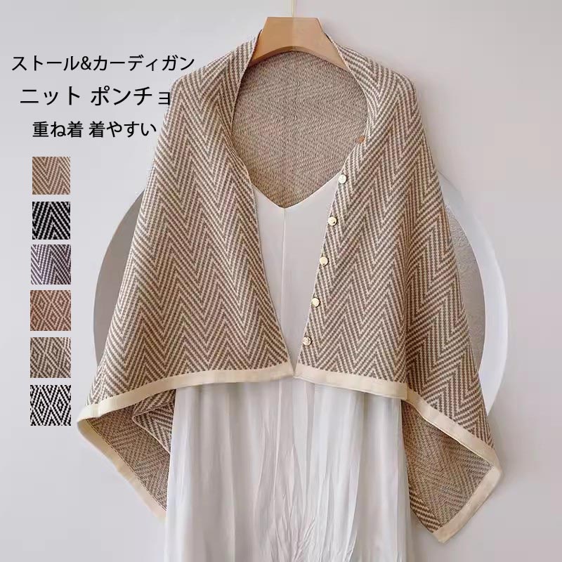 ストール カーディガン ニット ポンチョ レディース 重ね着 春 秋 冬 羽織 2 ケープ お出かけ 普段着 着痩せ 秋物 暖かい 贈り物 誕生日 記念日 20代 30代 40代 50代