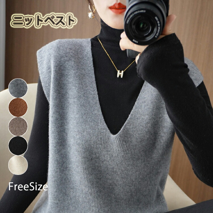 ニットベスト プルオーバーベスト ネック ノースリーブ ニット トップス レディース ゆったり 春 秋 冬