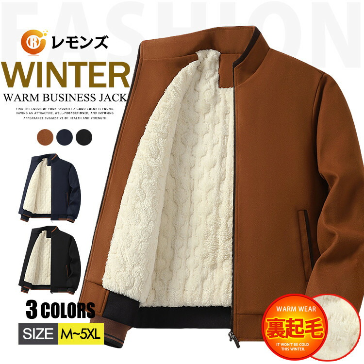 ボアブルゾン 裏ボア 裏起毛 ジャケット 暖か 防寒着 ビジネス アウター メンズブルゾン