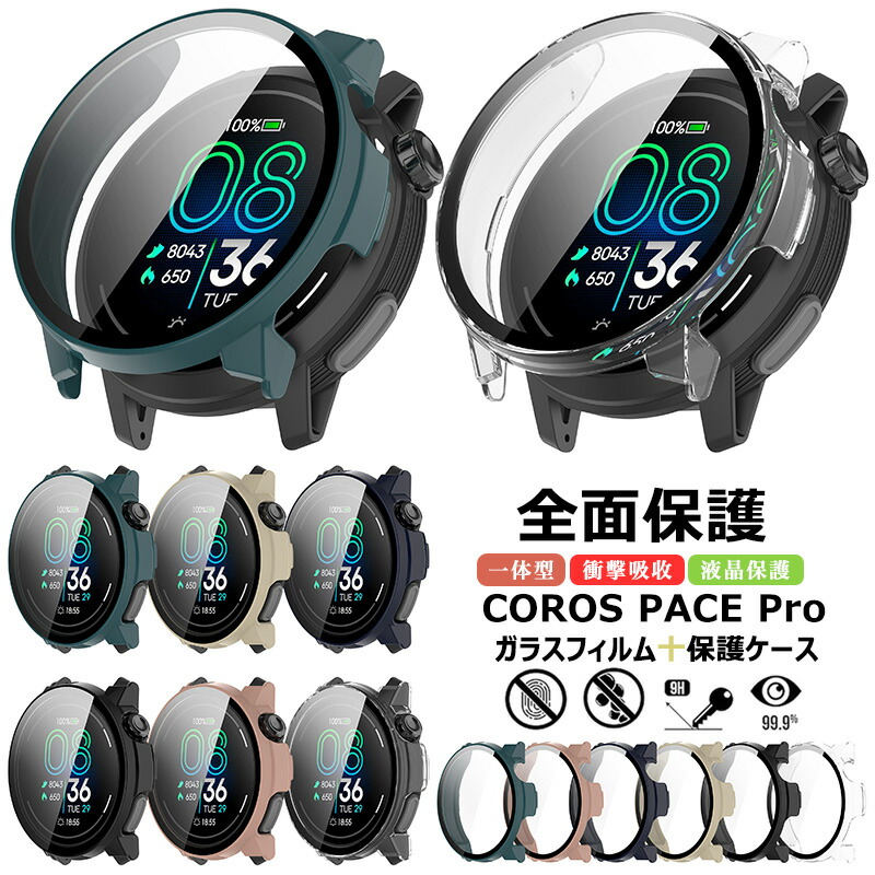 For COROSPACE Pro ケース フィルム+PCフレーム カバー COROS PACE ガラスフィルム クリア 保護カバー Proケース