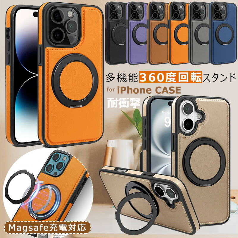 多機能360度回転スタンド 12 13 14 アイフォン 15 カバー アイホン 15 ビジネス 15 リングスタンド一体型ケース マグネット搭載 縦横両対応