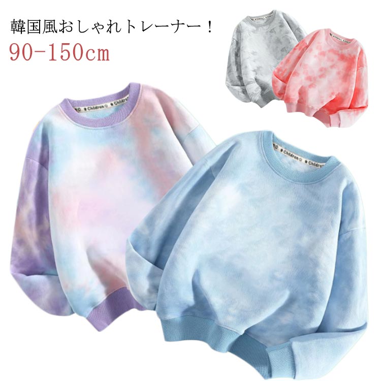 トレーナー 春秋 ジュニア 長袖 タイダイ柄 キッズ パーカー 女の子 トップス 男の子 ロングTシャツ 子供服 おしゃれ 綿 冬 絣染め お洒落 カジュアル 小学生 保育園 クルーネック