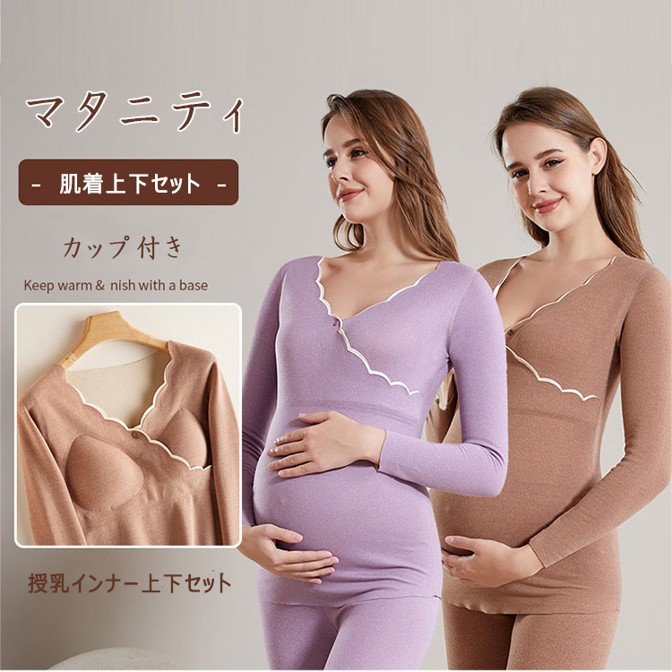 授乳服 インナー マタニティ 上下セット 長袖 授乳口 カシュクールオープン ズボン ウエスト調節可 マタニティウエア 授乳インナー 温か 保温 秋 冬 マタニティ肌着 寝巻き 部屋着 産前 妊婦服
