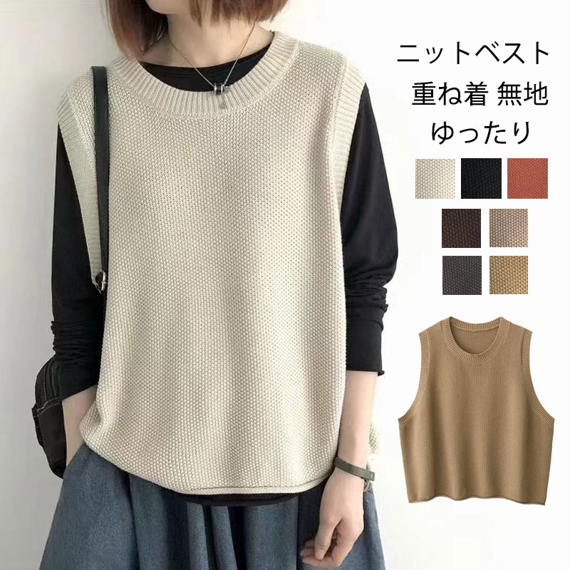 ニットベスト ベスト レディース トップス プルオーバー ニットセーター 丸首 重ね着 お洒落 オフィス 春 秋 冬 お出かけ 普段着 秋物 新作 20代 30代 40代 50代