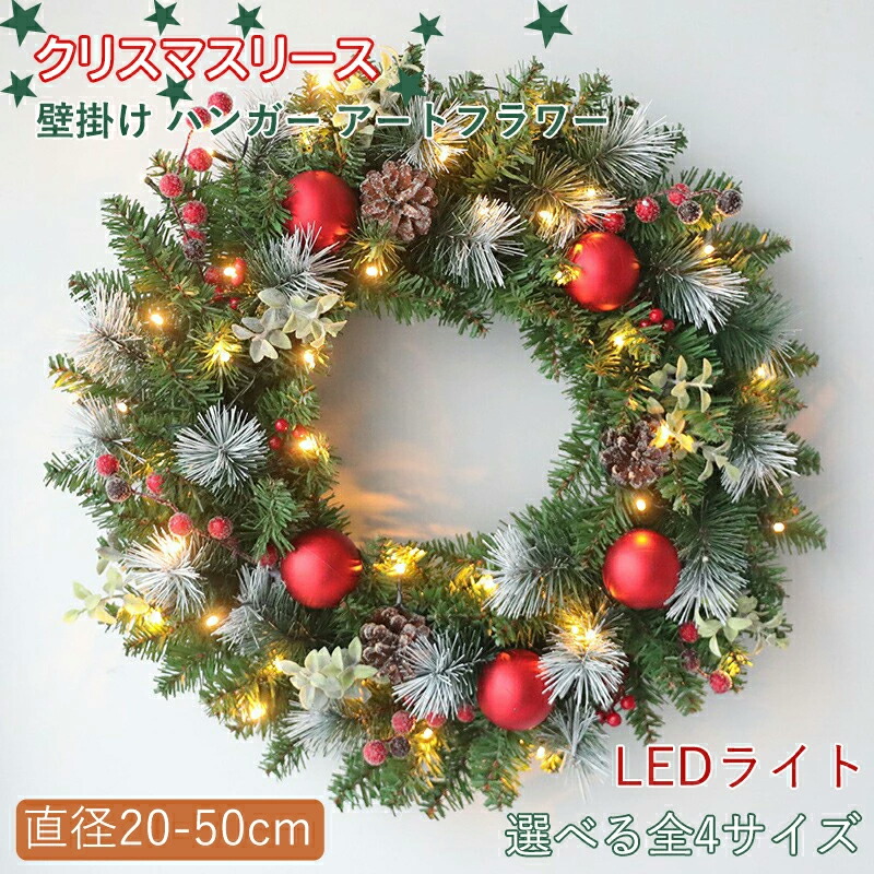 クリスマスリース 玄関 おしゃれ 飾り 電飾 北欧 造花 大きい ナチュラル クリスマスパーティー 飾り付け 玄関飾り led LEDライト 手作り 上品 キラキラ 装飾 かわい 赤