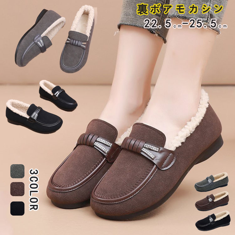 ムートン モカシン 秋冬 シューズ レディース スリッポン フラット ファー 靴 パンプス ローファー ボア モカシン大きいサイズ 小さいサイズ もこもこ 軽くて暖かい ボア入りモ ふわふわ