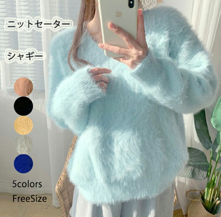 シャギー ニット セーター プルオーバー レディース 秋冬 シャギーニット トップス 長袖 Vネック ふわふわ モコモコ ニットトップス ゆったり ニットプルオーバー あたっか 保温 秋 冬 防寒