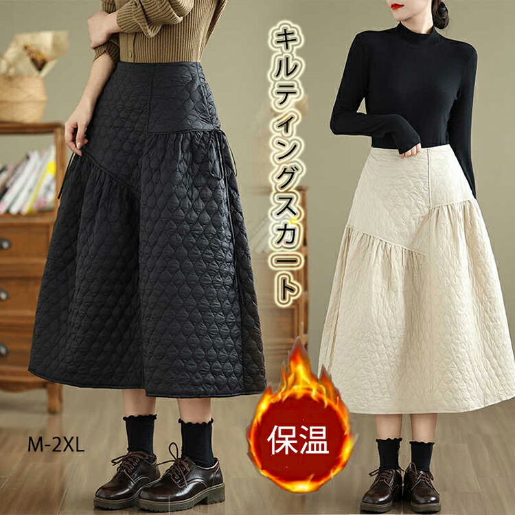スカート ロング 秋冬 キルティングスカート フレア 秋冬 キルティング 大きいサイズ 大人 中綿入り ミモレ丈