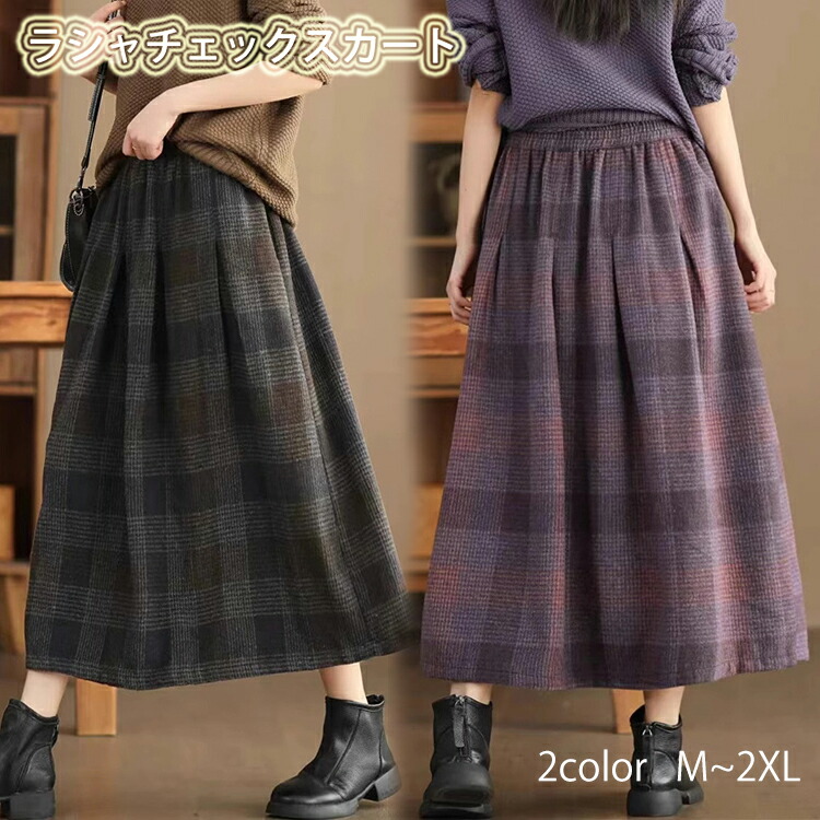 タックスカート タータンチェック 縦ライン ギャザー おしゃれ 通勤 通学 お出かけ 20代 30代 40代 50代 カジュアル 柔らかい 大人可愛い 揺れ感 清楚 美ライン 着痩せ あったか 脚長