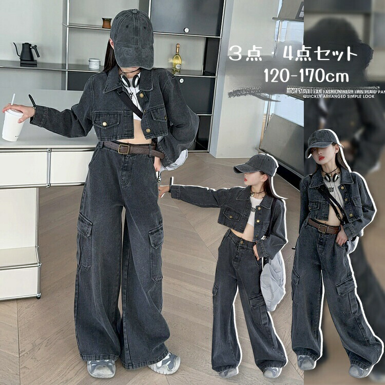 子供服 女の子 ダンス服 デニム セットアップ 3点 4点 運動 デニム服 デニムジャケット ズボン デニムパンツ 可愛い 韓国 子供 服 おしゃれ 幼稚園 キッズ きれいめ 12 大人っぽい