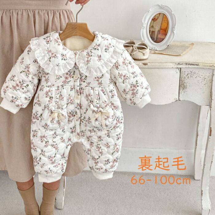 カバーオール 女の子 裏起毛 中綿 赤ちゃん ロンパース 防寒 冬 水洗濯 着ぐるみ 新生児 あたたか ベビー服 長袖 可愛い 出産祝い 妊婦 プレゼント 66cm 百日祝い