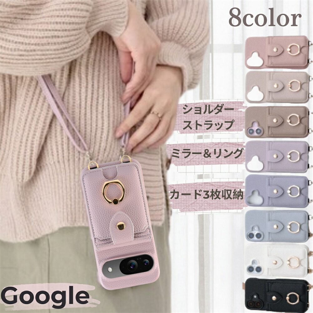 Google Pixel9 A ケース ミラー付き Pixel8 Pixel7 Pixel6 カバー スマホショルダー Pixel 9 Pro スマホケース ショルダー タイ XLPro