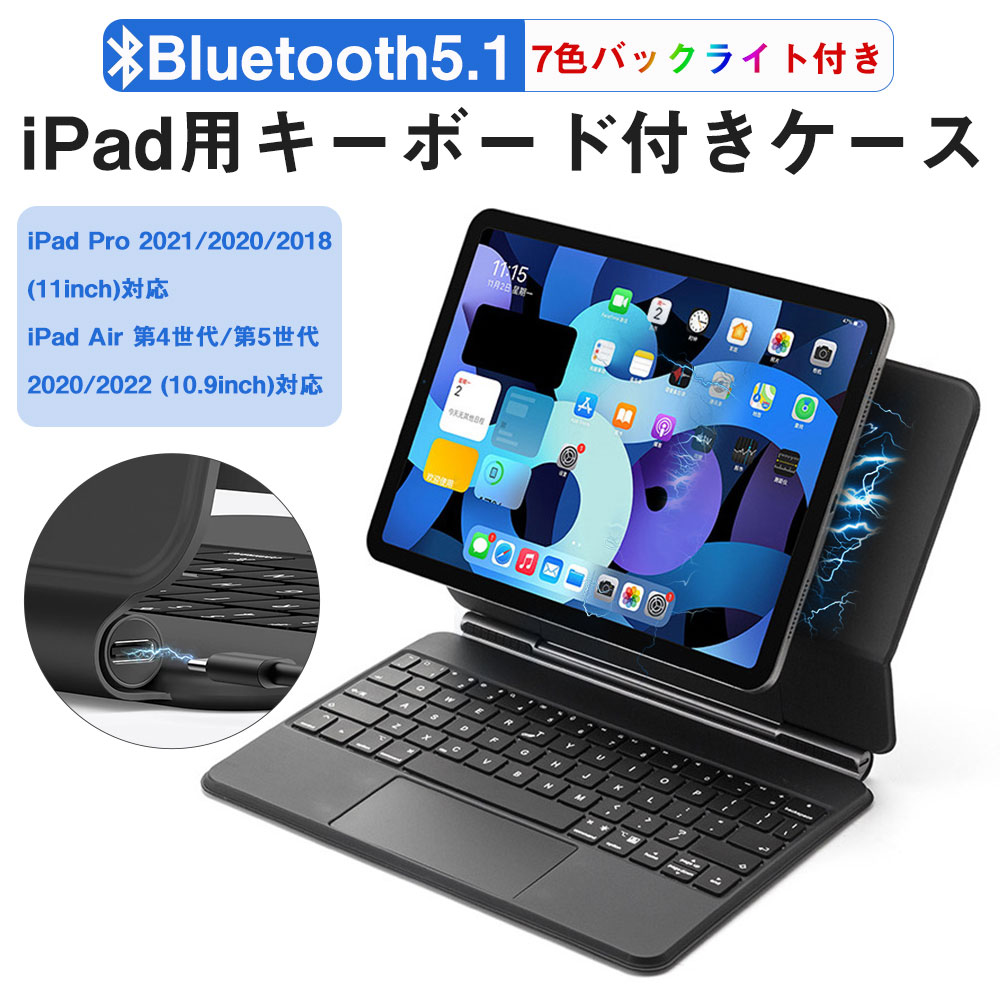 ipad キーボード ケース iPad Air 10.9インチ Pro 11インチ キーボード付きケース タッチパッド搭載 Bluetooth5.1オートスリープ ス 7色LEDバックライト