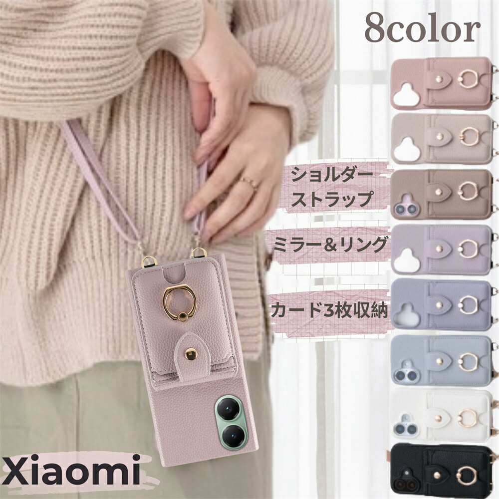 Redmi Note 14 Pro 5G ケース ミラー付き Xiaomi 15 カバー スマホショルダー POCO X7 14T ショルダー タイプ Re スマホケース