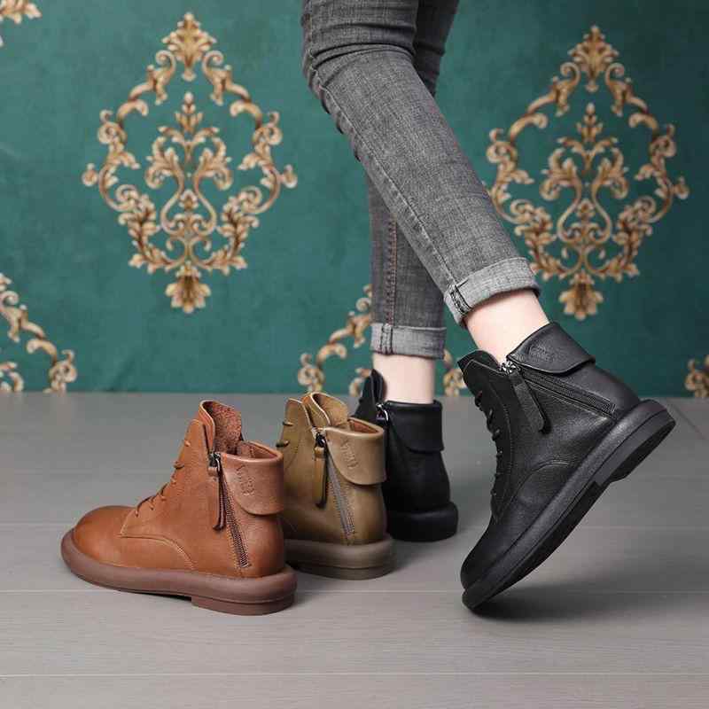 ローヒールイ ショートブーツ 甲高 幅広 歩きやすい ブーツ 太い