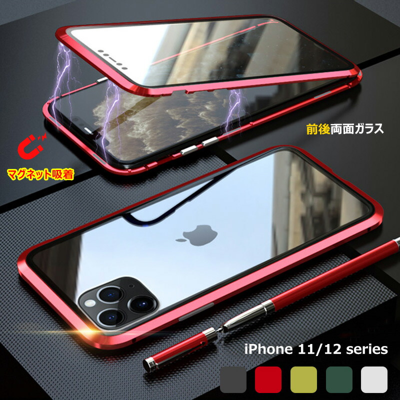 12 6.1ケース 液晶保護 両面ガラス 12 ケース マグネットバンパー 11 ケース 液晶ガラス 12 カバー アルミバンパー 磁石 耐衝撃 メタル