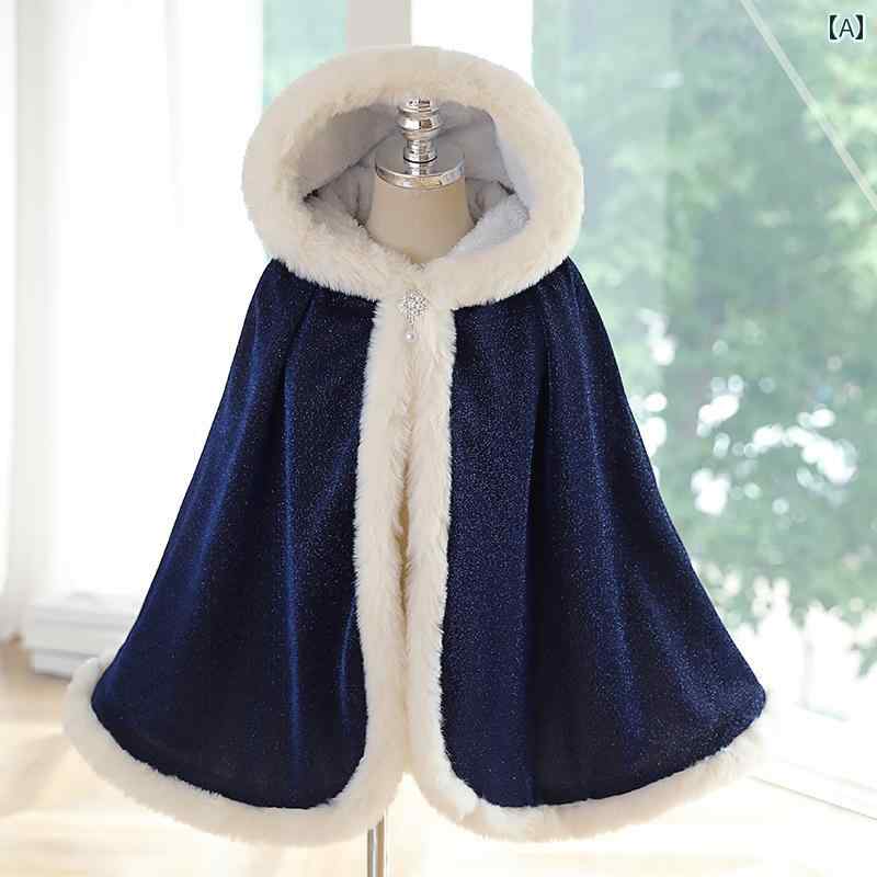 マント 子供 秋冬 女の子 レトロ 青い フード 厚手 防風性 暖かい キッズ ボタン1つキッズ マタニティ キッズファッション その他 ベビー