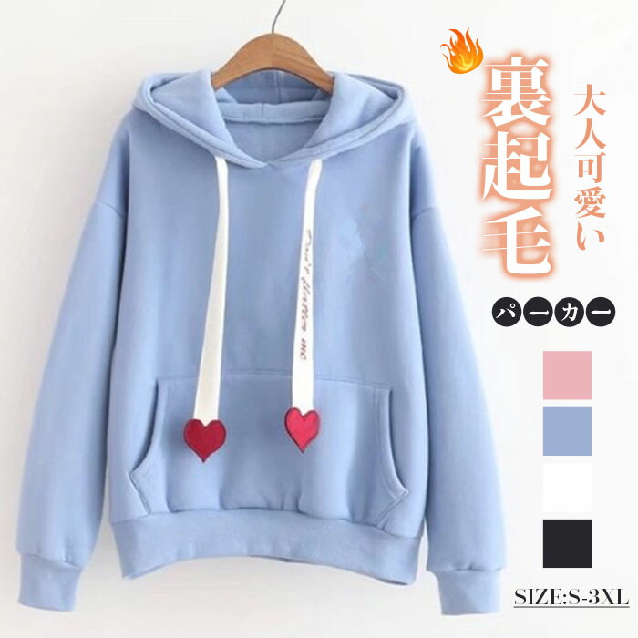 裏起毛 パーカー レディース 秋 冬 フード 長袖 可愛い ハート 裏起毛パーカー レディースパーカー ノーマル丈 ロング丈 ブラック ホワイト ブルー S M L 2XL 3XL ルームウェア XL