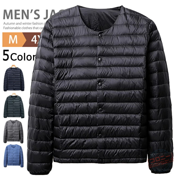 ダウンカーディガン インナーダウン メンズ ダウンジャケット Vネック クルーネック 暖か 防寒 インナージャケット ライトダウン ビジネス スーツ ノーカラージャケット オフィス カジュア ブルゾン