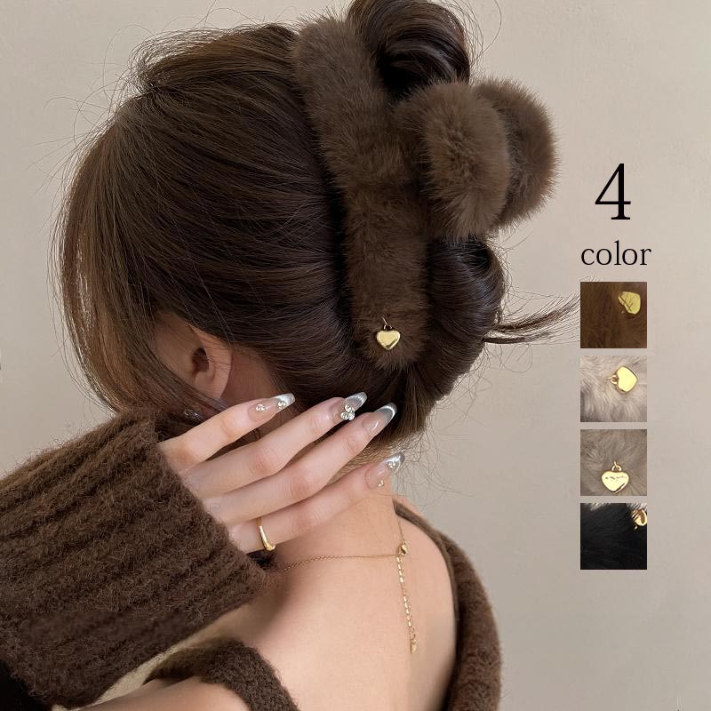 バンスクリップ ハート付き ヘアアクセサリー ヘアクリップ 韓国 大きめ もこもこ ファー かわいい おしゃれ 大人 簡単 まとめ髪 韓国っぽ お団子 ギフト プレゼント人気 ファッション雑 毛量多い
