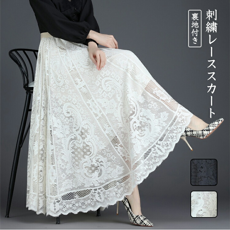 レーススカート レディース 夏 刺繍 チュールスカート ロング フレア 二枚重ねのチュール ラインストーンボリューム Aライン ブラック グリーン ウエストゴム 上品 冬 ホワイト ブラッ 春