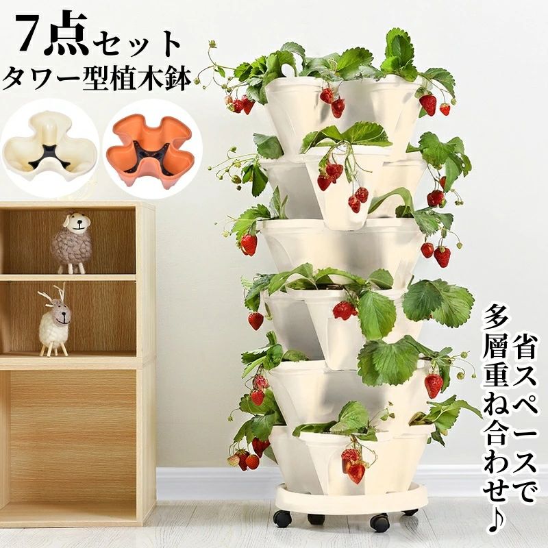 植木鉢 植栽ポット イチゴ プランター タワー型 家庭菜園 野菜栽培 キャスター付き 組み合わせ 鉢置台 立体植木鉢 多層重ね合わせ サニーレタス 多肉植物 観葉植物 ホーム インテリア 庭 通気性