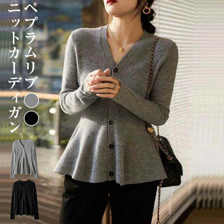50%OFF トップス カーディガン ニット リブニット ペプラムトップス レディース 秋 冬 長袖 Vネック ペプラムカーディガン ボタン 羽織 ゆったり きれいめ 通勤 カジュアル 大きいサイズ