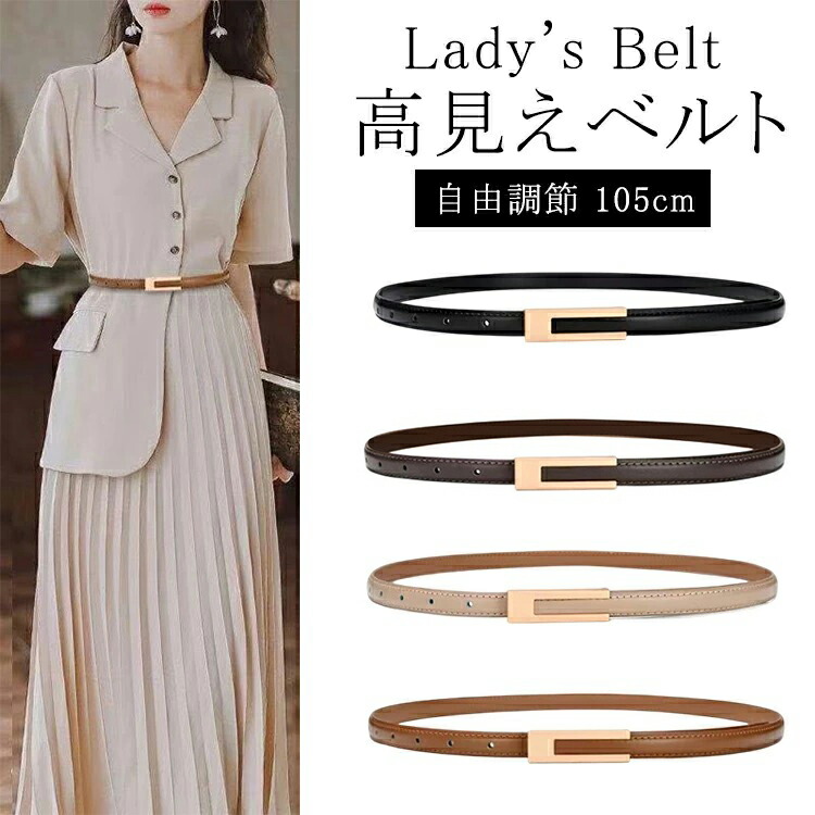 ベルト レディース 細ベルト 穴調整可能 シンプル PUレザー スリムベルト ゴールドバックル ワンピース用 コート用 おしゃれ フォーマル ビジネス 通勤 通学 可愛い オフィス カ お洒落