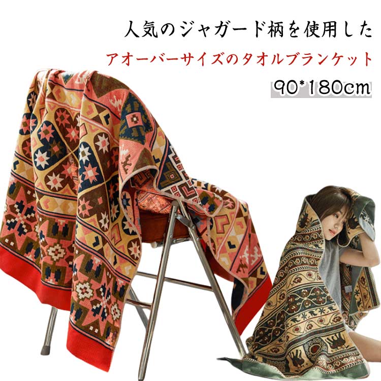ビーチ 北欧 ビーチタオル ブランケット バスタオル 総柄 ジャガード おしゃれ 90*180cm ひざ掛け 綿 タオルケット アウトドア お昼寝 冷房対策 タオル 大判 バスタオ タオルブランケット