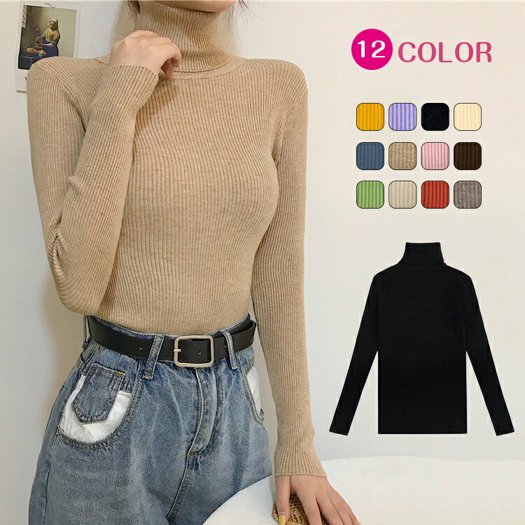 長袖 リブニット リブセーター レディース ニット セーター インナー タートルネック クールネック ハイネック プルオーバー トップス カットソー きれいめ かわいい 着痩せ 長袖Tシャツ おしゃれ