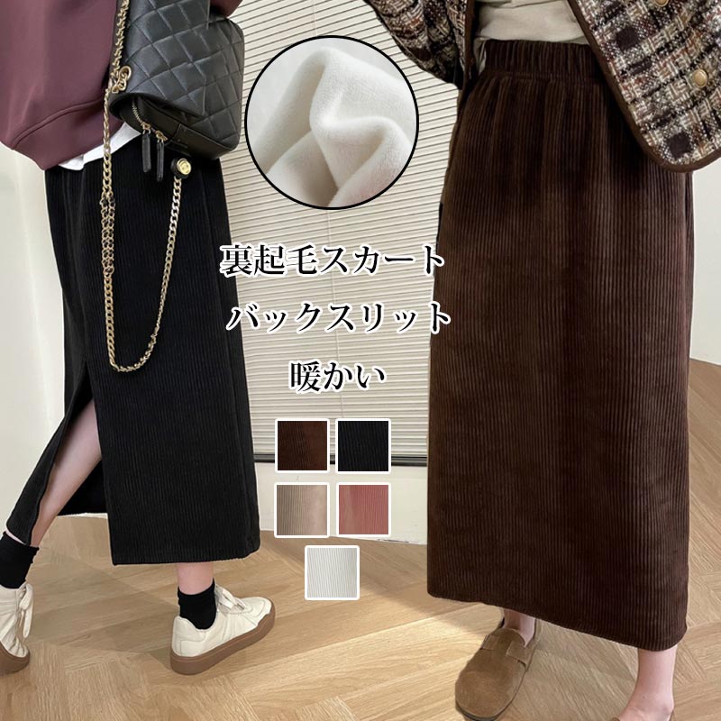 裏起毛 スカート コーデュロイ ボアスカート レディース 裏起毛スカート 冬 ボア ロングスカート 防寒 ミモレ丈 ボトムス 無地 体型カバー バックスリット マキシスカート タイトスカート
