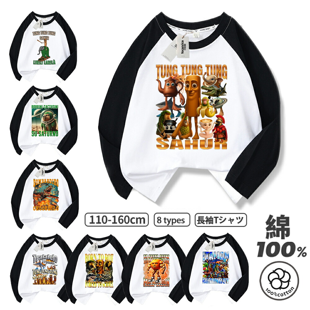 イタリアンブレイン ロット 長袖 tシャツ ト Italian Brainrot トゥントゥントゥンサフール TungTungTungSahur 子供服 綿100% 長袖Tシ イタリアンブレインロット