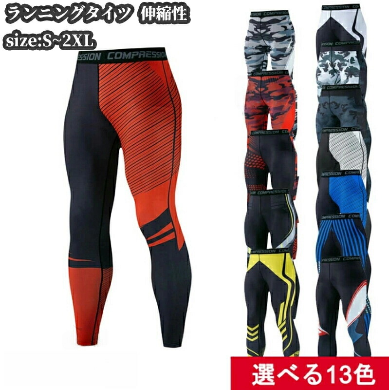 送料無料 ランニングタイツ スポーツ コンプレッションウェア フィットネス サイクリング ストレッチ メンズ 父の日 ブルー レッド ブラック 黒 イエロー ネイビー グレー 2