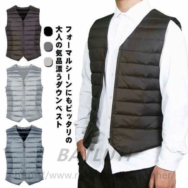 ダウン ベスト メンズ スリム 軽量 薄手 防寒 インナー アウター