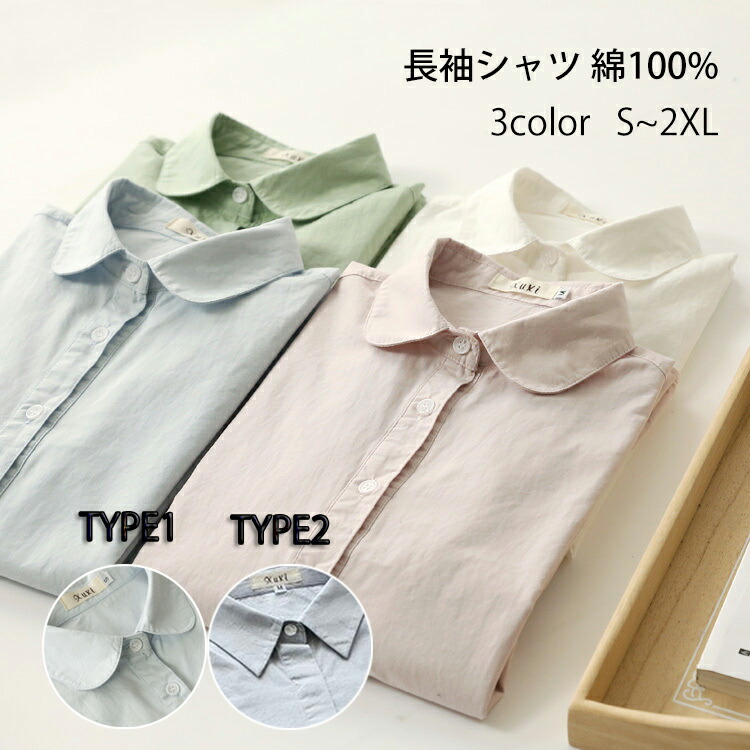 長袖シャツ 綿100% レディース 春 秋 シャツ 長袖 襟付き 白シャツ 無地 通勤 ビジネス トップス ブラウス シャツブラウス 大きいサイズ 綿シャツ 綿 折り襟 コットン