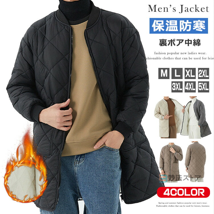 ダウンジャケット メンズ 裏起毛 中綿ジャケット ボアブルゾン 中綿入り ジャケット ブルゾン キルティング 大きいサイズ 5XL 6XL スタンドネック 中綿ブルゾン 厚手 暖かい アウ ジャンパー