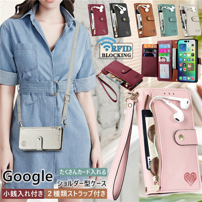 9ケース 8ケース ショルダー ストラップ コイン入れ 付き カード収納 グーグル ピクセル 10 9 7 6 9 ショルダーケース カバー 耐衝撃 ファスナー付き