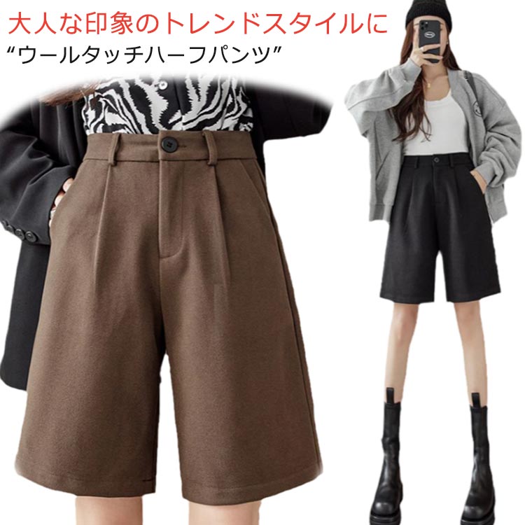 秋冬コーデ ハーフパンツ ショートパンツ 半ズボン 女性 大きいサイズ 通勤 大人可愛い ウォッシャブル 秋冬 おしゃれ カジュアル レディース 体型カバー 美脚 ブ 無地