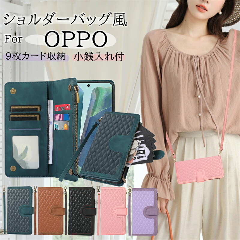 ファスナー付き OPPO Reno13 A A3 A79 5G Reno11 ケース 手帳型 財布型 ショルダー Reno10 Pro Find X8 A77 Reno9