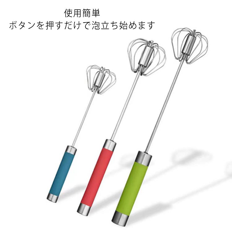 半自動 泡立て 押すと回転 泡立て器 ステンレス製菓道具 キッチンツール キッチン用品 電池不要 小型 軽量 グリーン レッド ブルー 家庭用