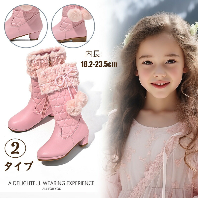 ロングブーツ 子供シューズ 長靴 女の子 秋冬 防寒シューズ 裏起毛 あつたか スノーブーツ ハイヒール ローヒール ファスナー オシャレ カジュアル 美脚 女児 着やすい 保温 室外 クリスマ 防水