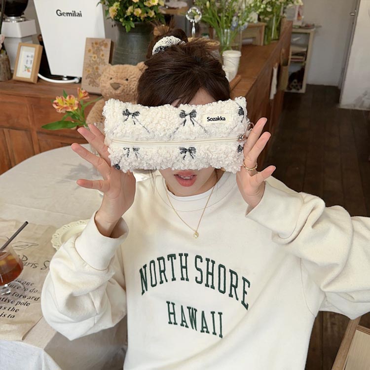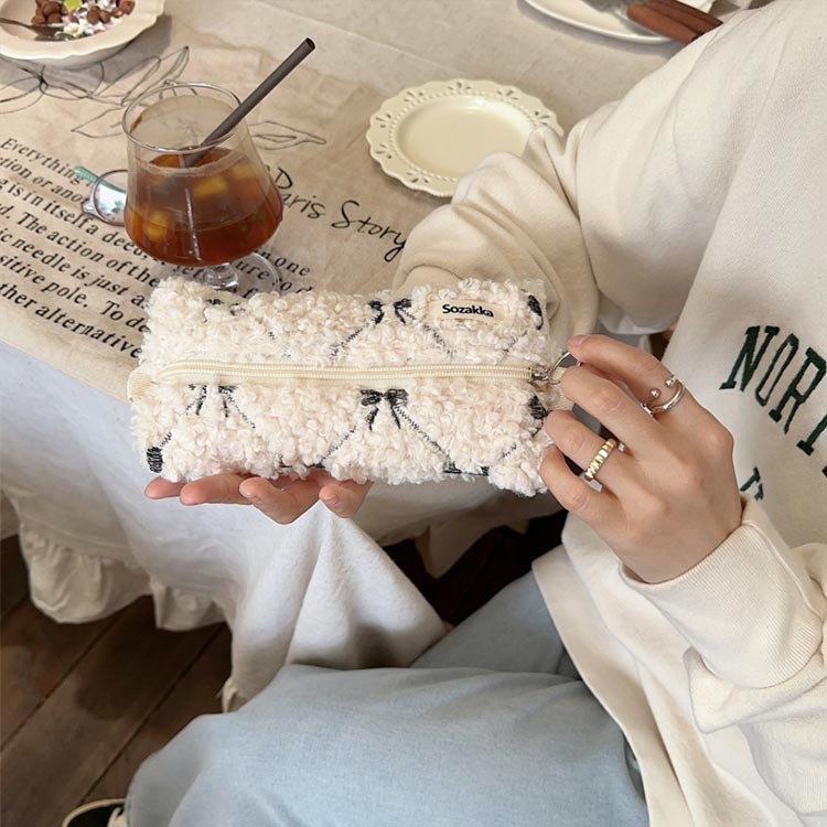 ペンケース かわいい リボン刺繍 もこ 文房具 事務用品 筆記具 ペンケース 通販