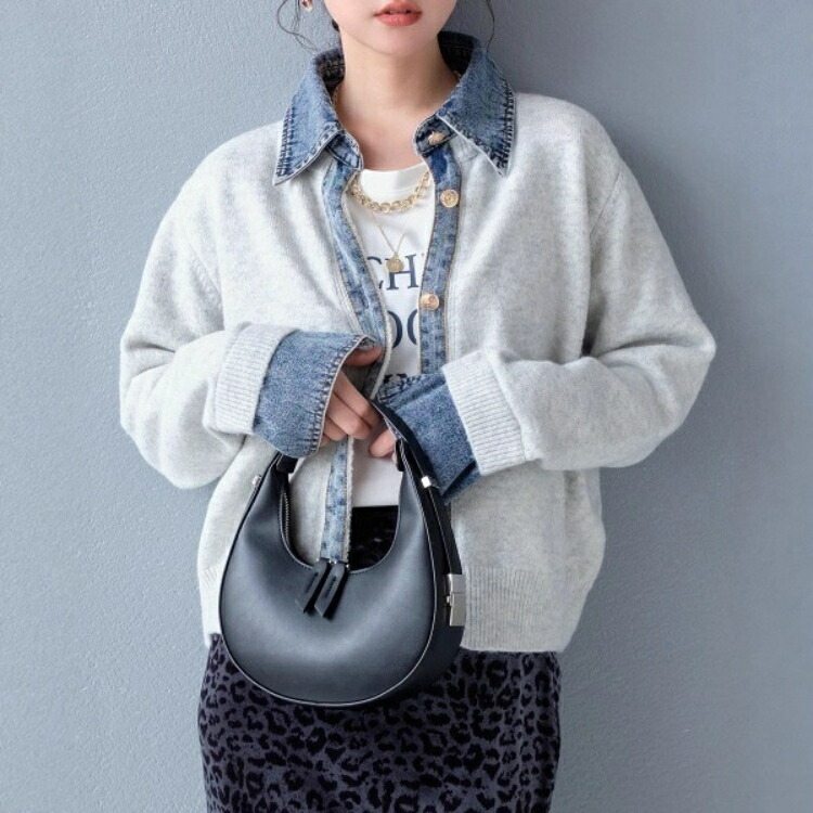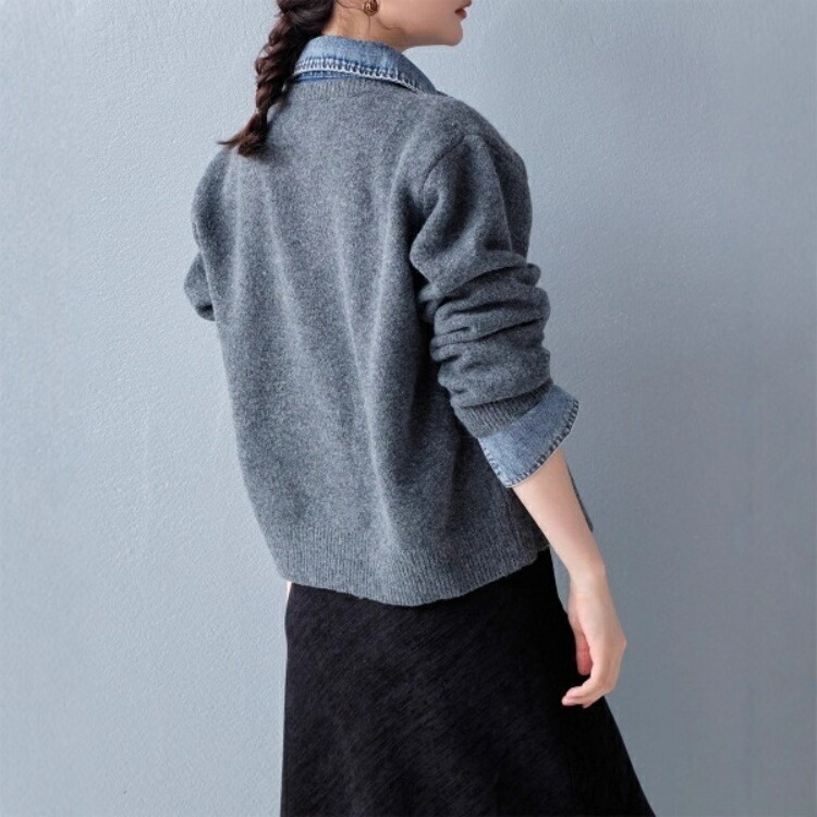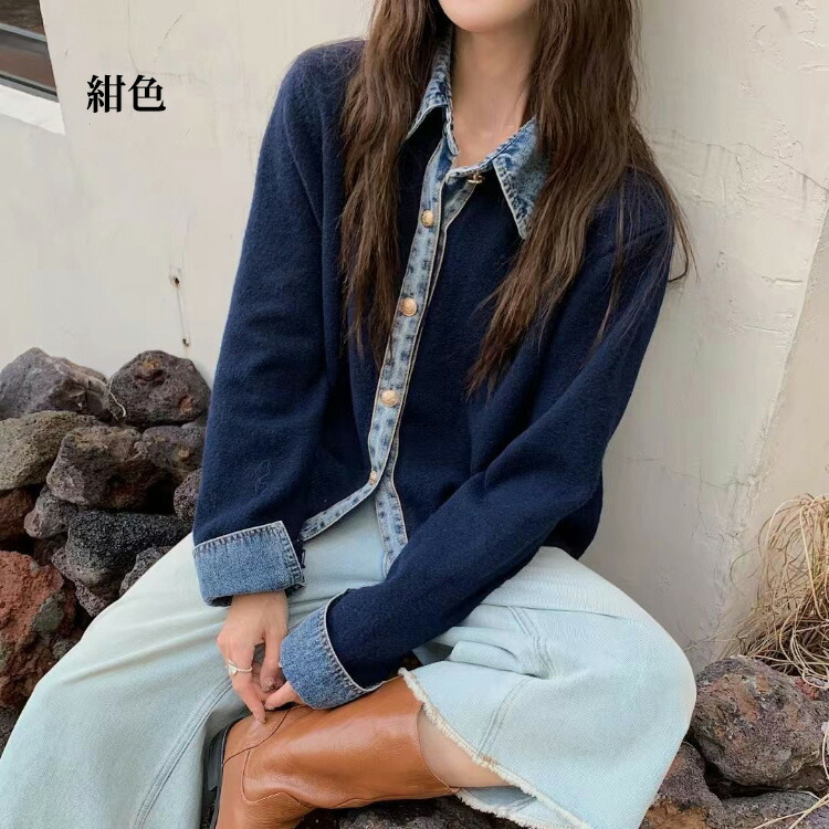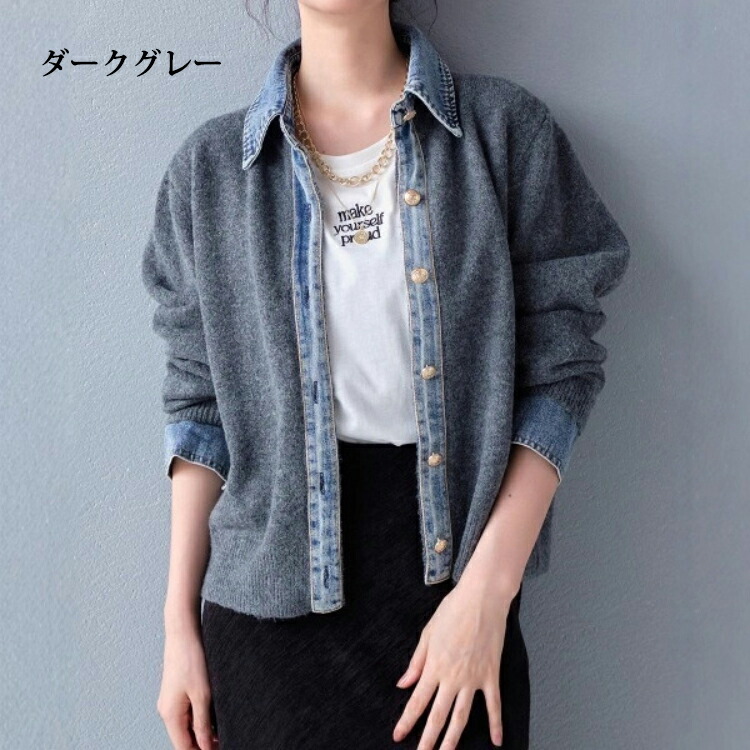 デニム ニット カーディガン ドッキン トップス カーディガン ボレロ 続々入荷中 ライトグレー ダークグレー コーヒー 紺色