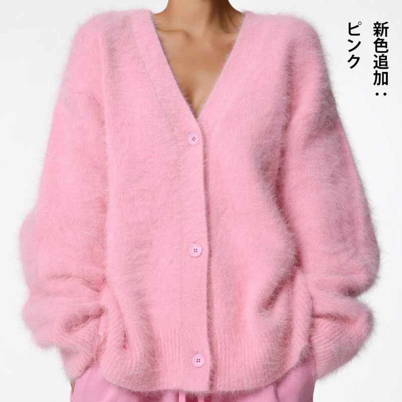 ニットカーディガン シャギーニット レ レディースファッション 続々入荷中 グレー ダークグレー ホワイト ブラウン ブラック 新色追加:ピンク