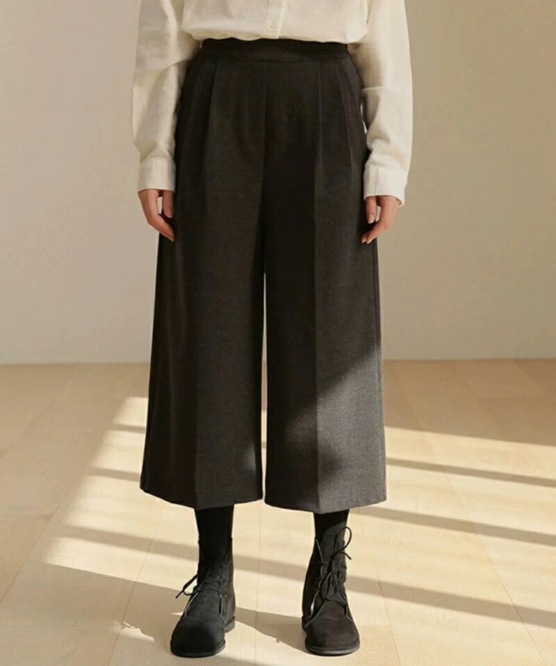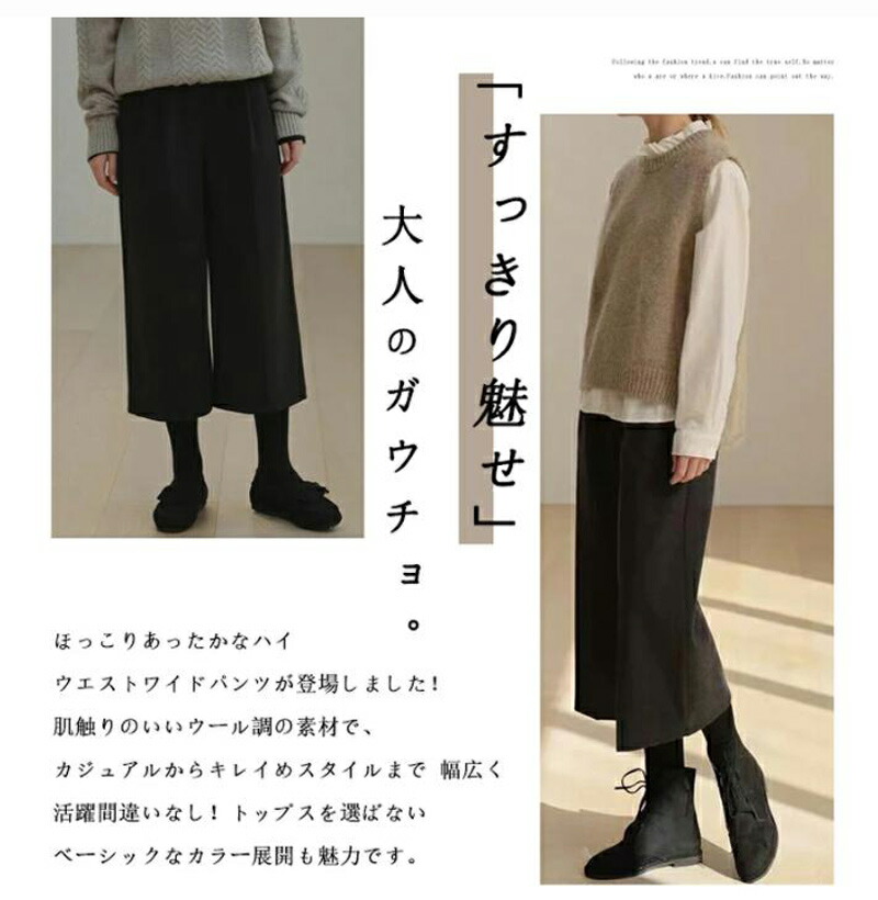 ウール調 ガウチョパンツ レディース ボトムス キュロットスカート 新作 グレー ブラック