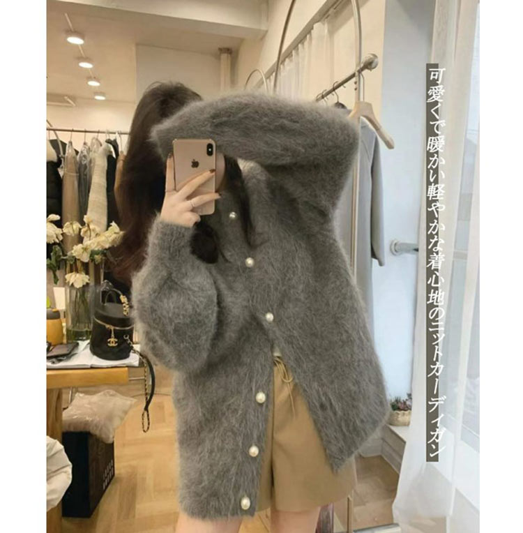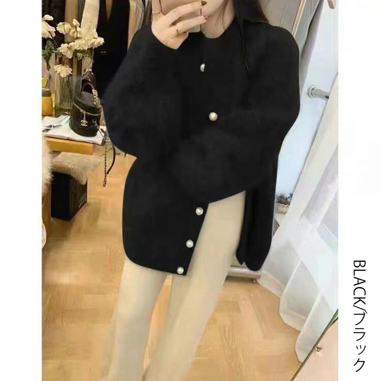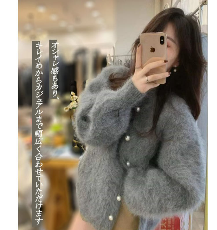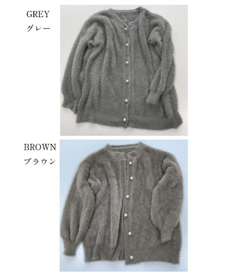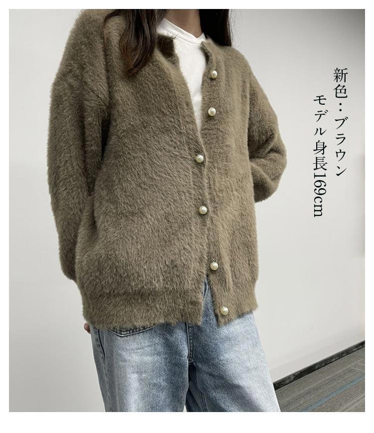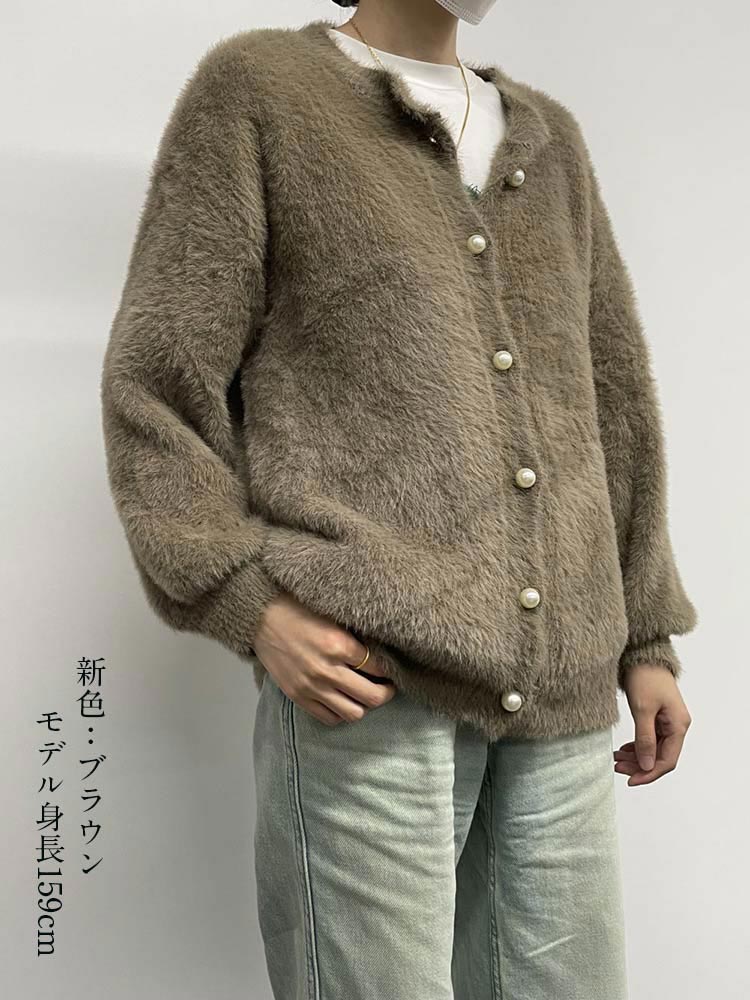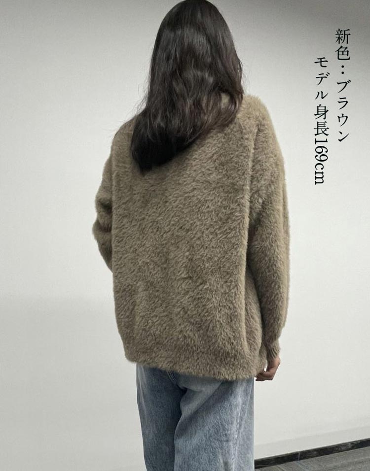 シャギー ニットカーディガン レディー トップス カーディガン ボレロ 新作 グレー ブラウン ブラック