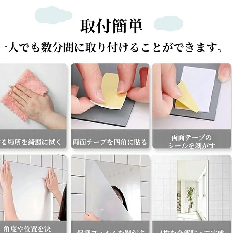 鏡 壁掛け ミラー 割れない鏡 全身 30*30cm 40*40cm 50*50cm