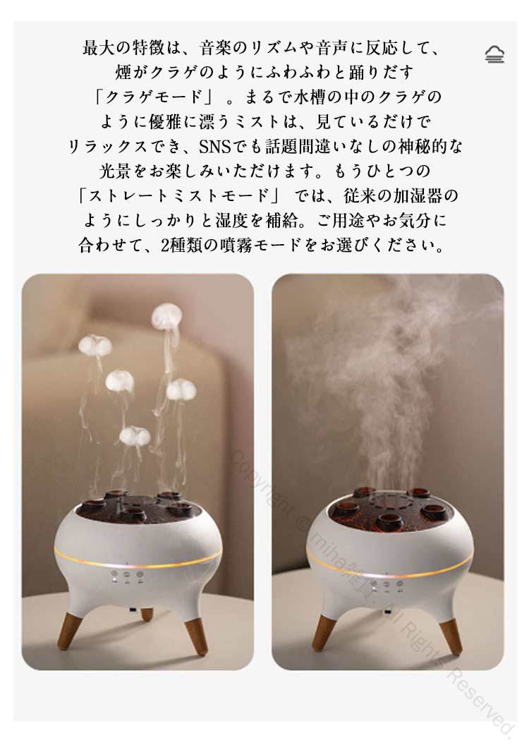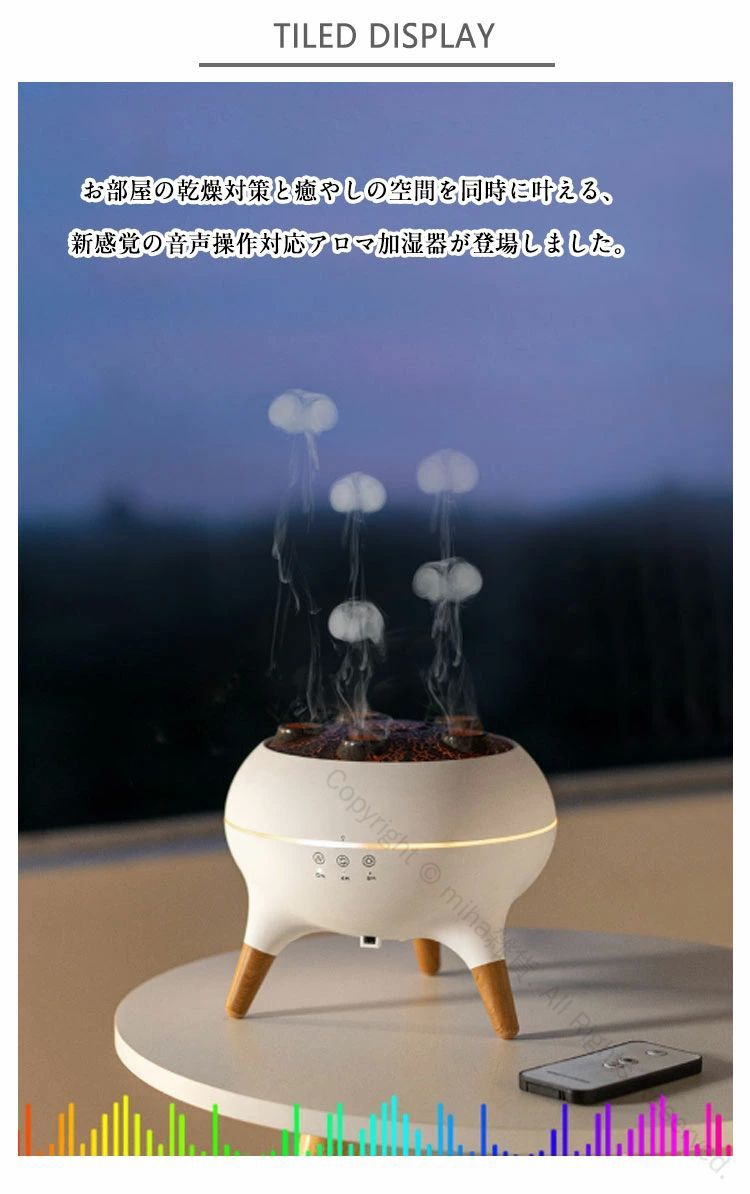 加湿器 寝室対応 7色LED搭載 大容量 タンク リモコン付き 音声操作 クラゲモード搭載 アロマディフューザー SNS話題 音楽連動オフィス用加湿器 火山デザイン