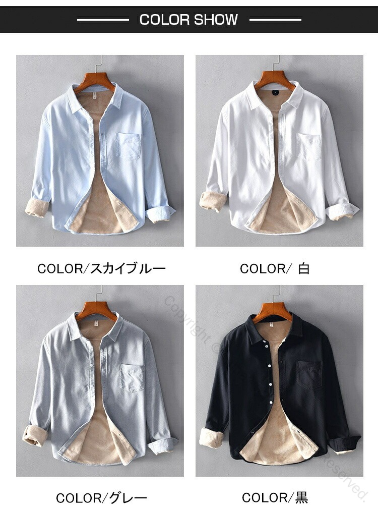 カジュアルシャツ メンズシャツ 裏ボア トップス カジュアルシャツ 早い者勝ち M L XL 2XL 3XL スカイブルー 白 黒 グレー